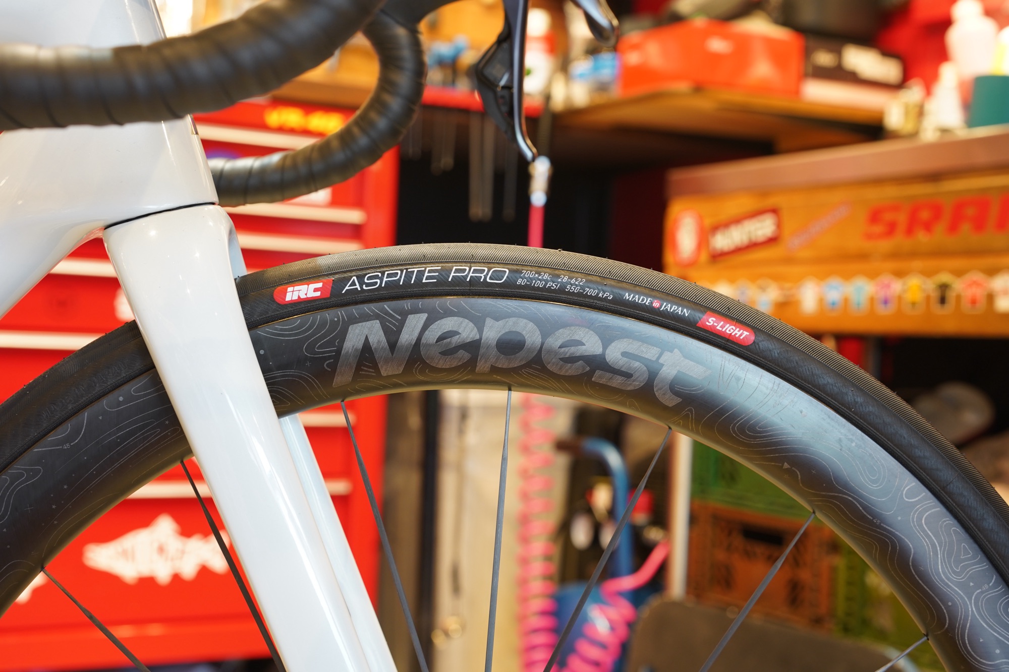 ホイールはネペスト、45㎜ハイトで1220gとスペックがなかなか魅力。
