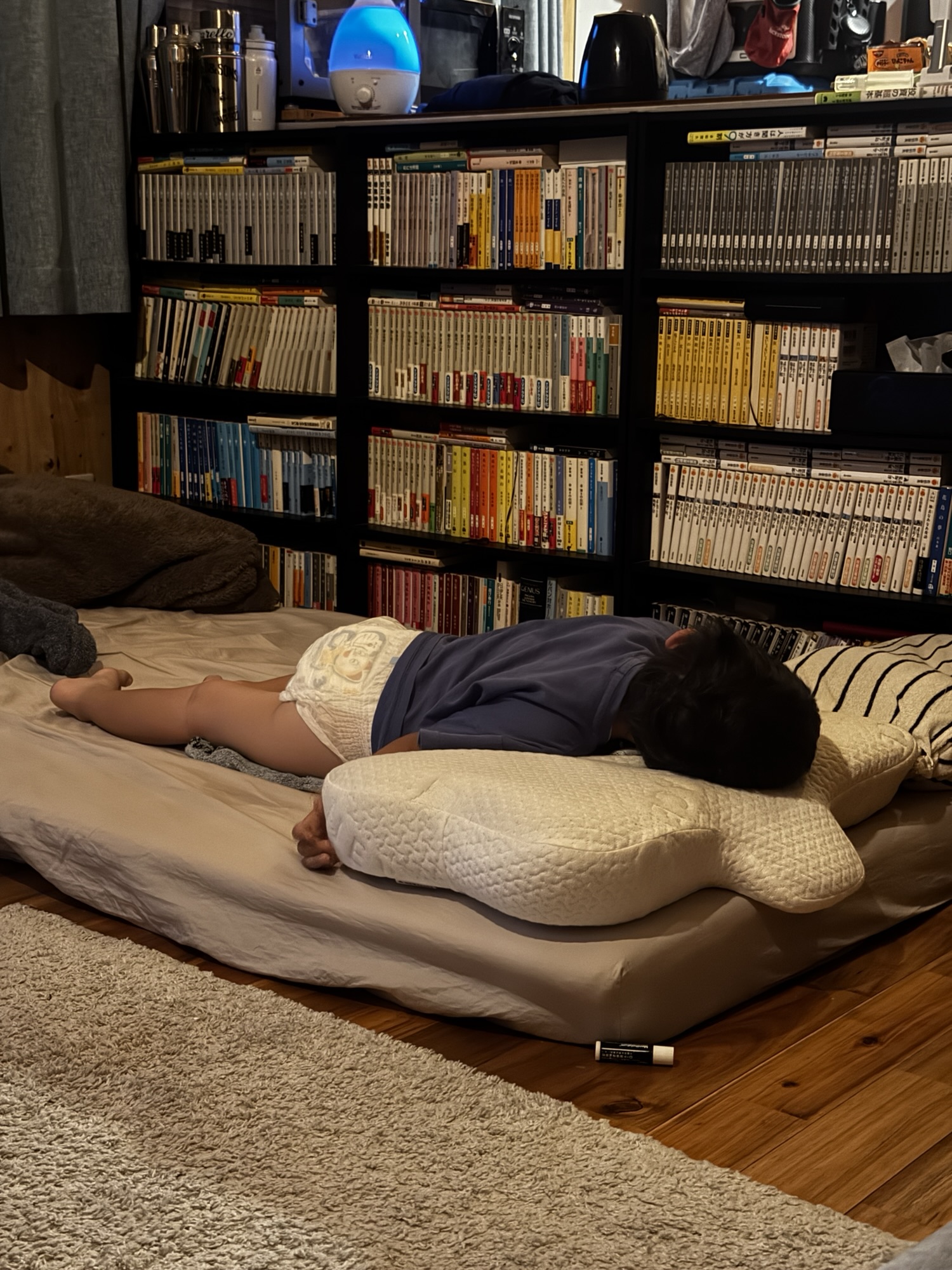 途中から抱っこで爆睡の為2階でそのまま寝かせる。
