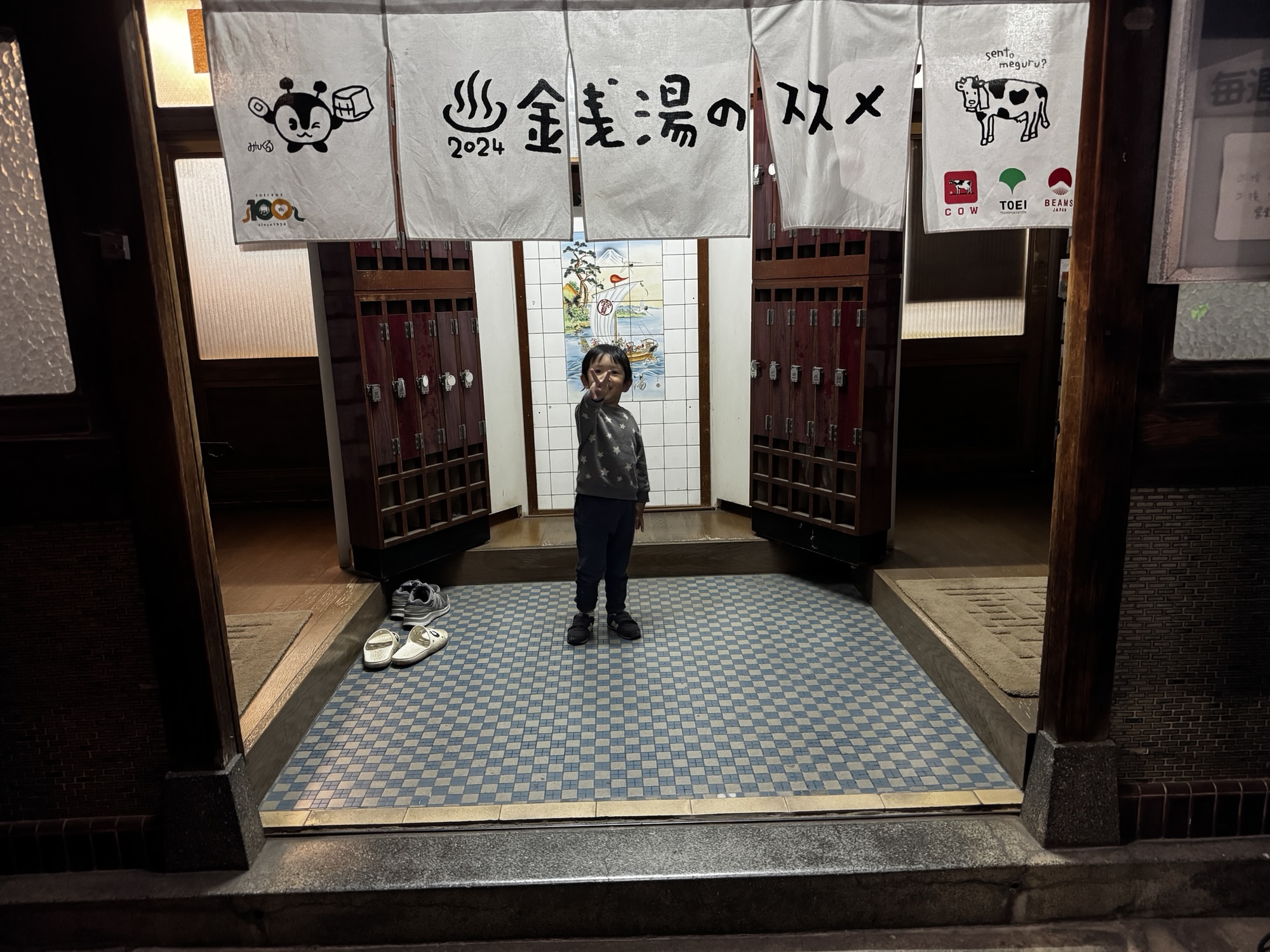 夜は別宅へまた戻ってきて、チビと銭湯へ。