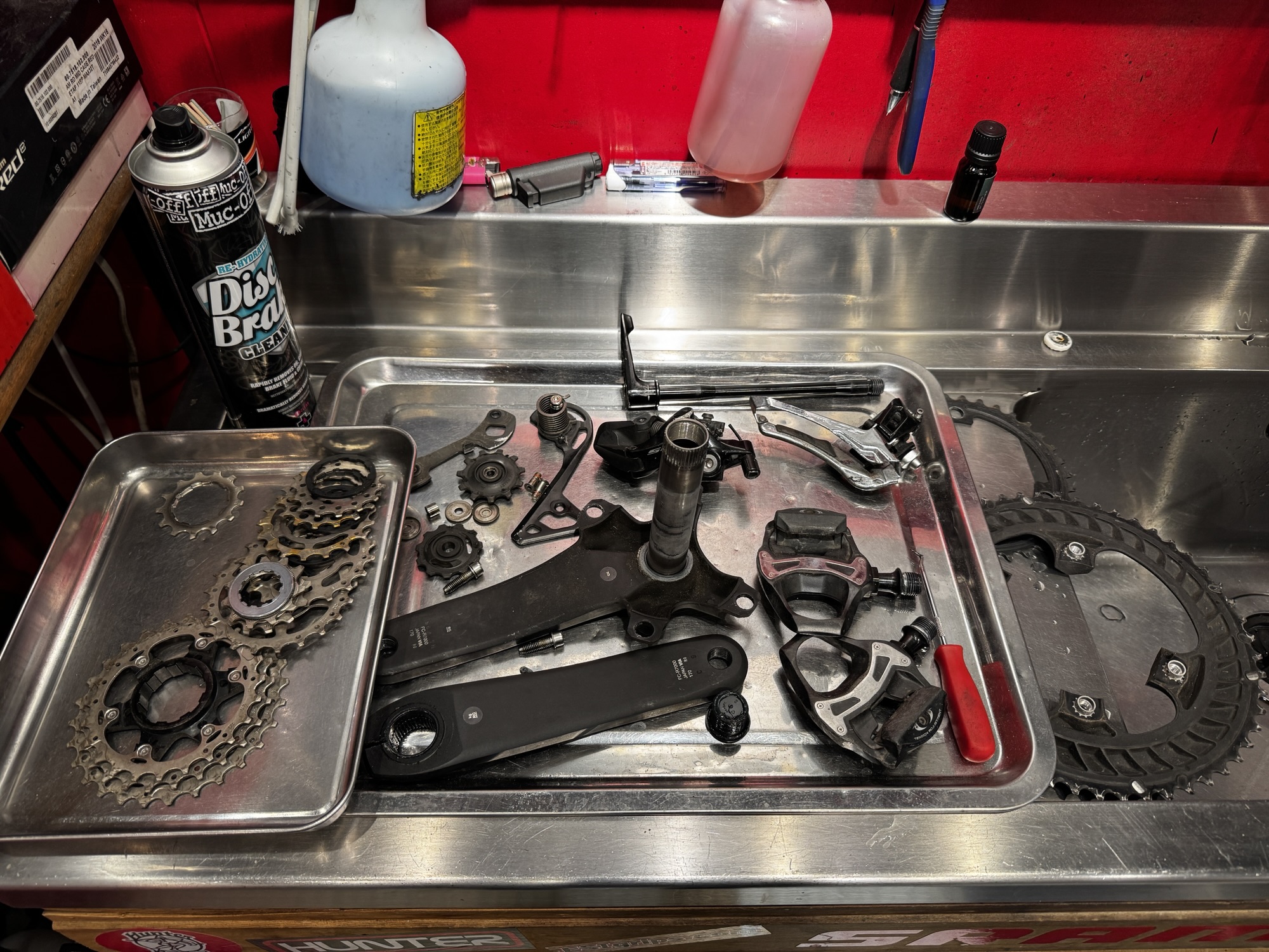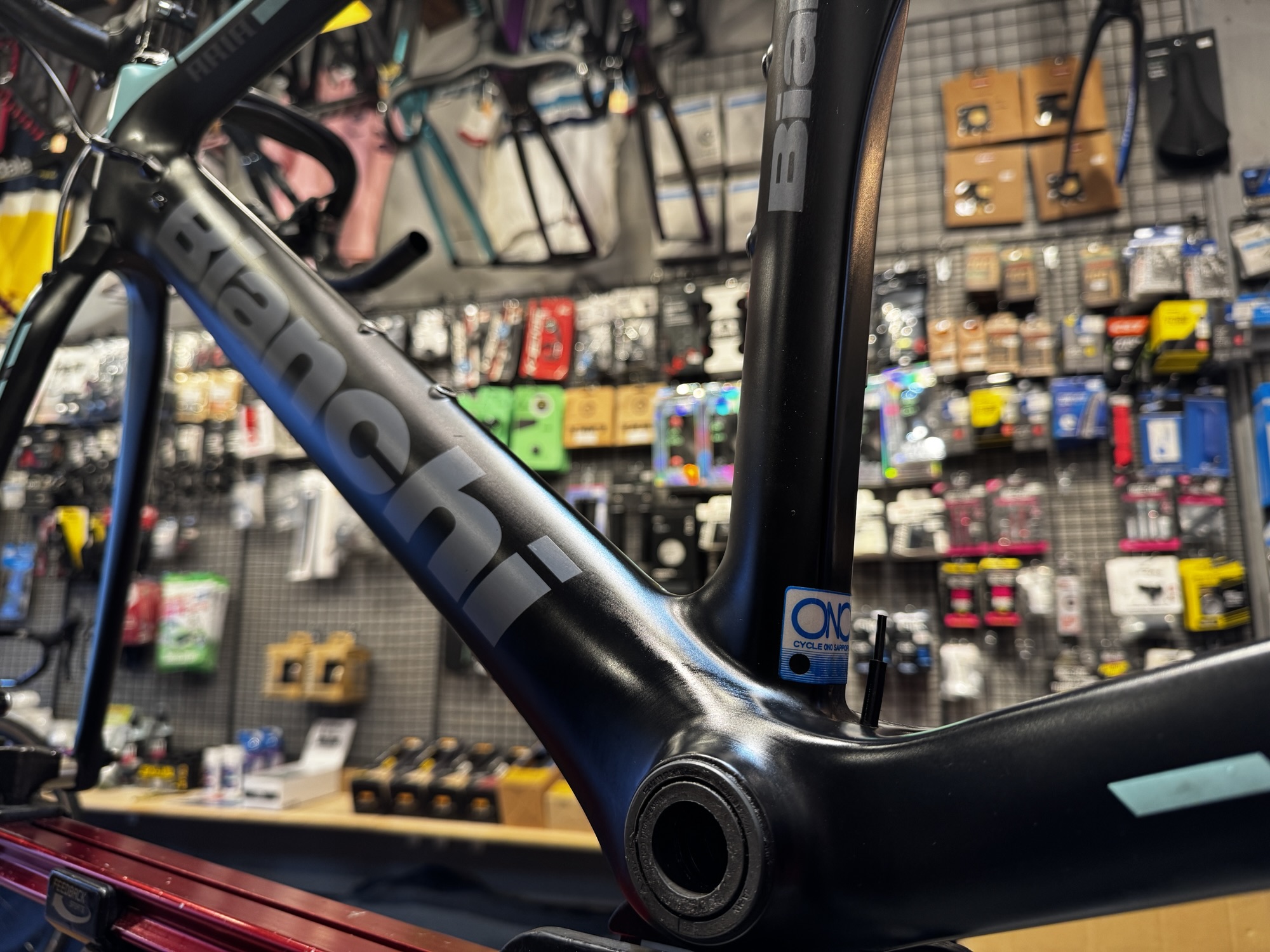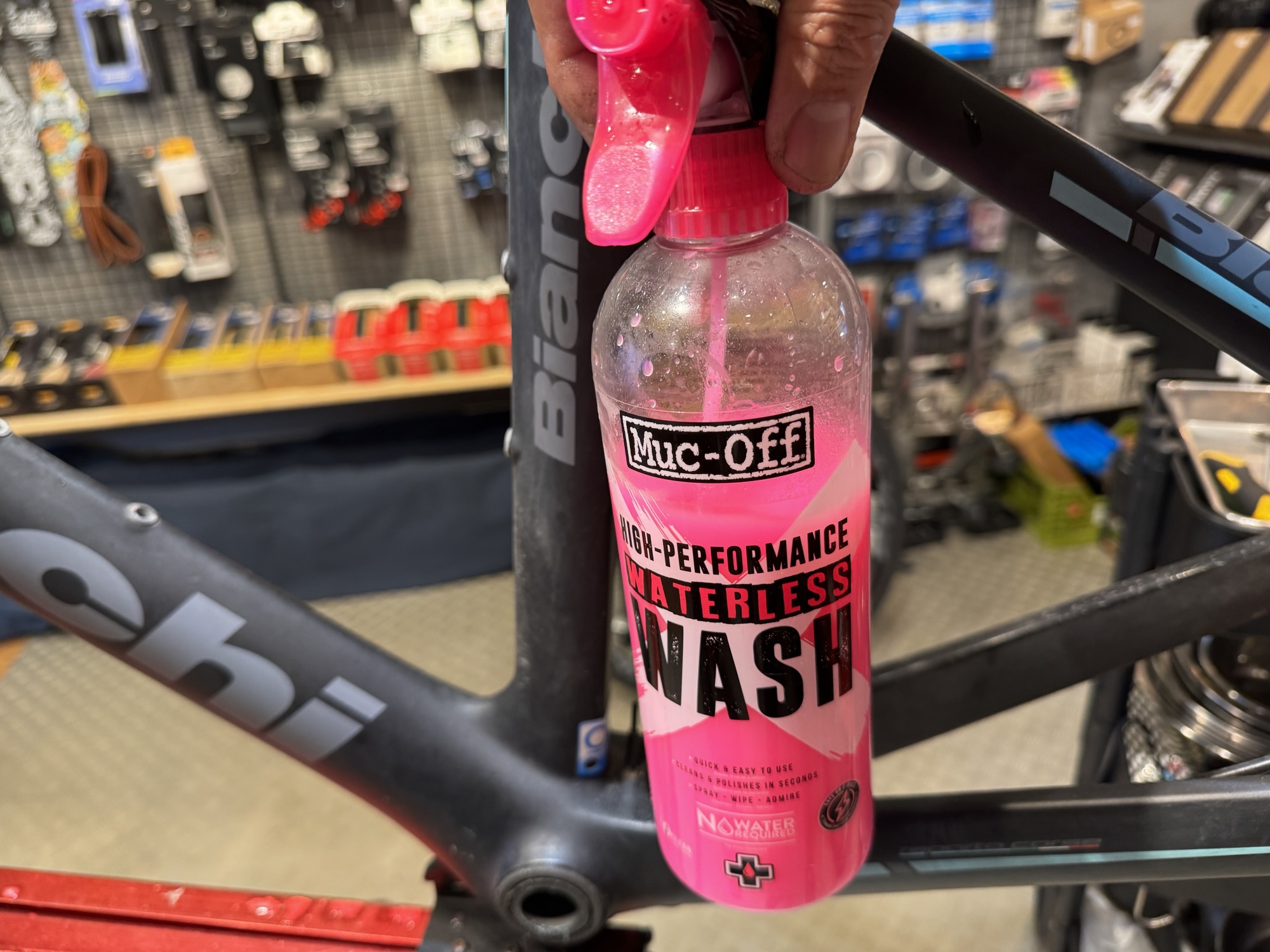 かなーりこのビアンキさんは汚れていたので、まずはフレーム掃除から。このケミカルが便利です。