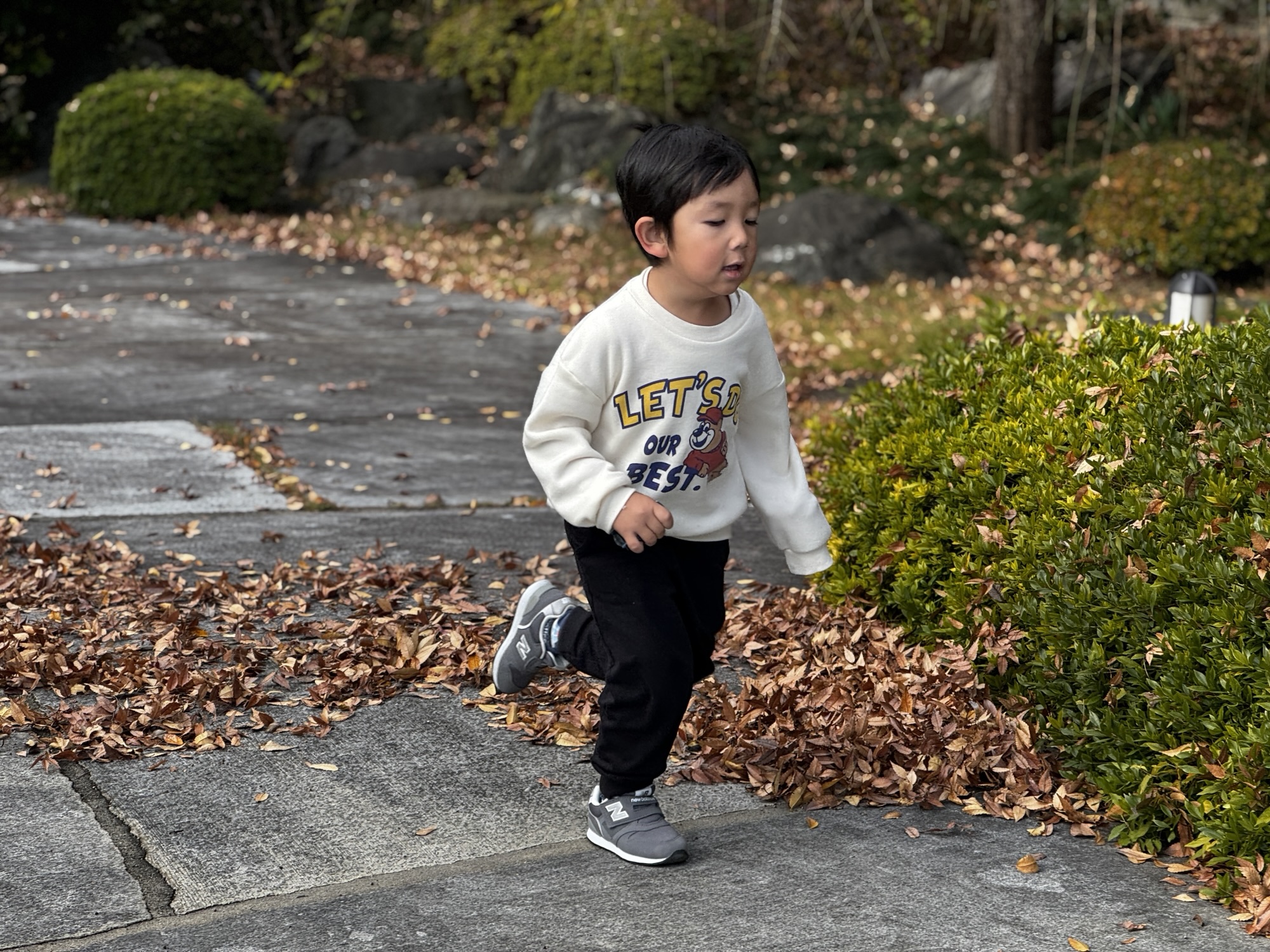 おチビさんは広い境内を走り回っておりました。