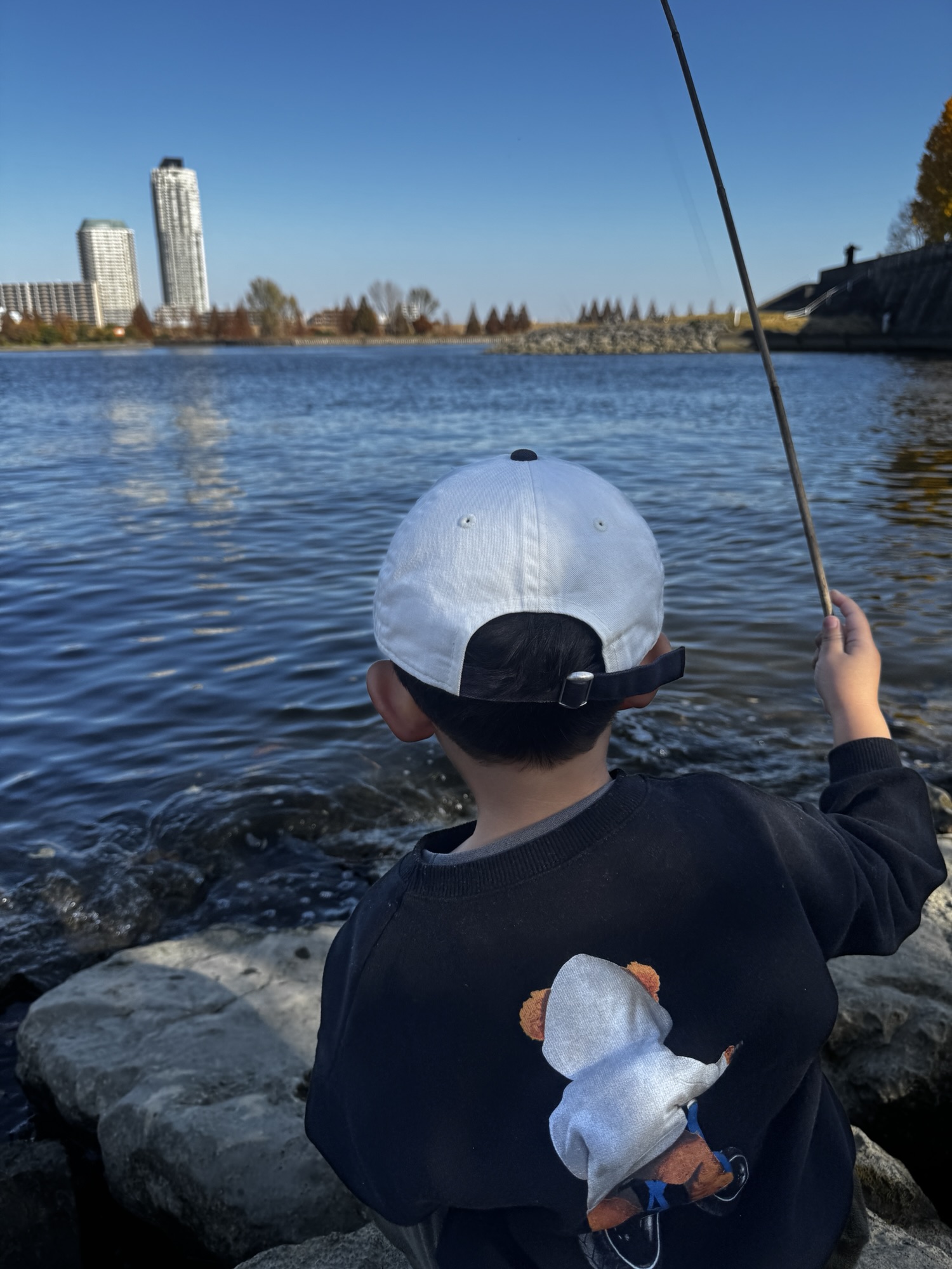 竿の(枝)握り方のなんかこうそっとした感じが流石わが子ですねwww
