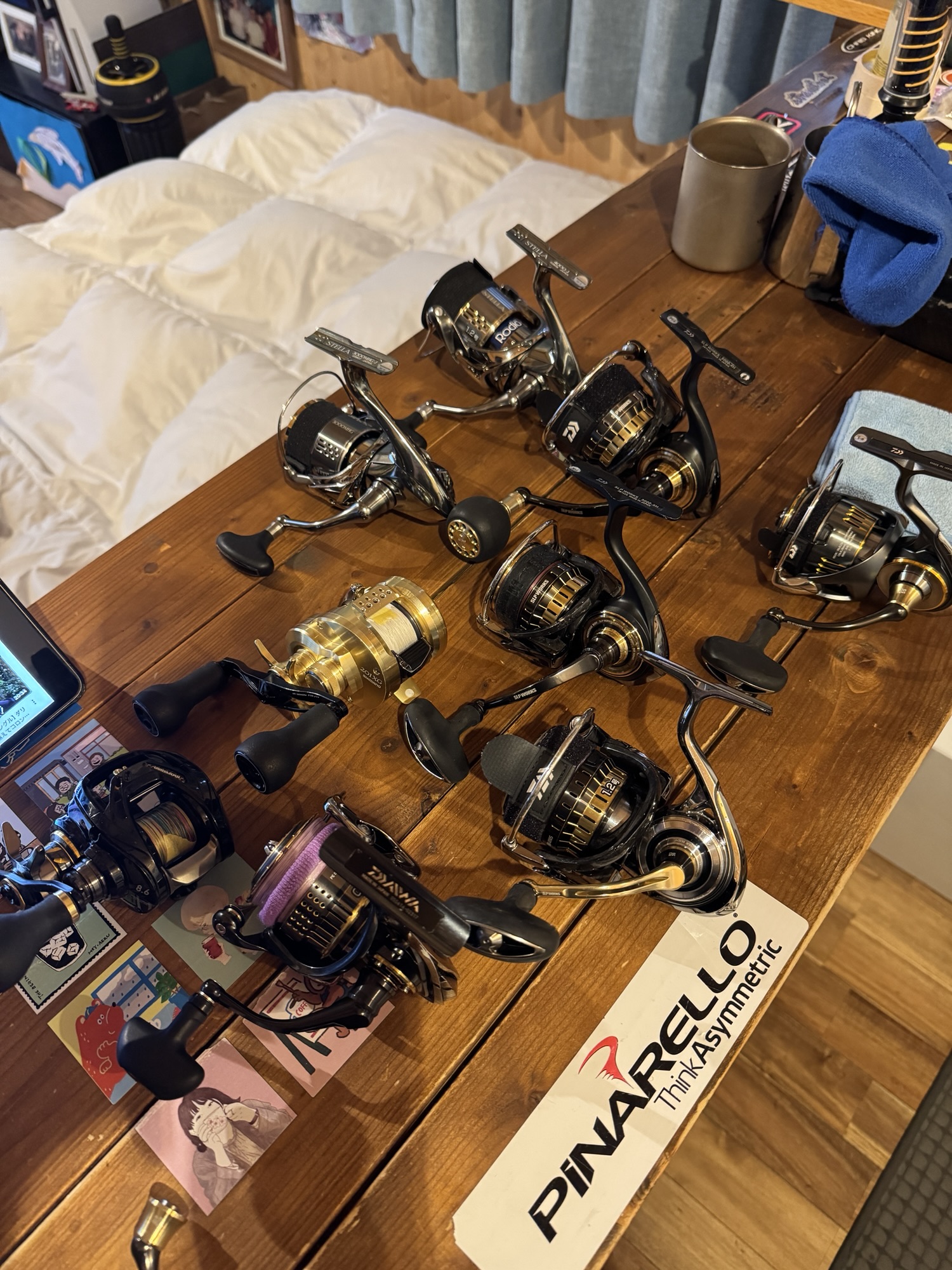 リールもだいぶ断捨離したとは言え、シーバス関係だけでもこの量ですからね…ww全て使い分けてはいるから良いんだけど。