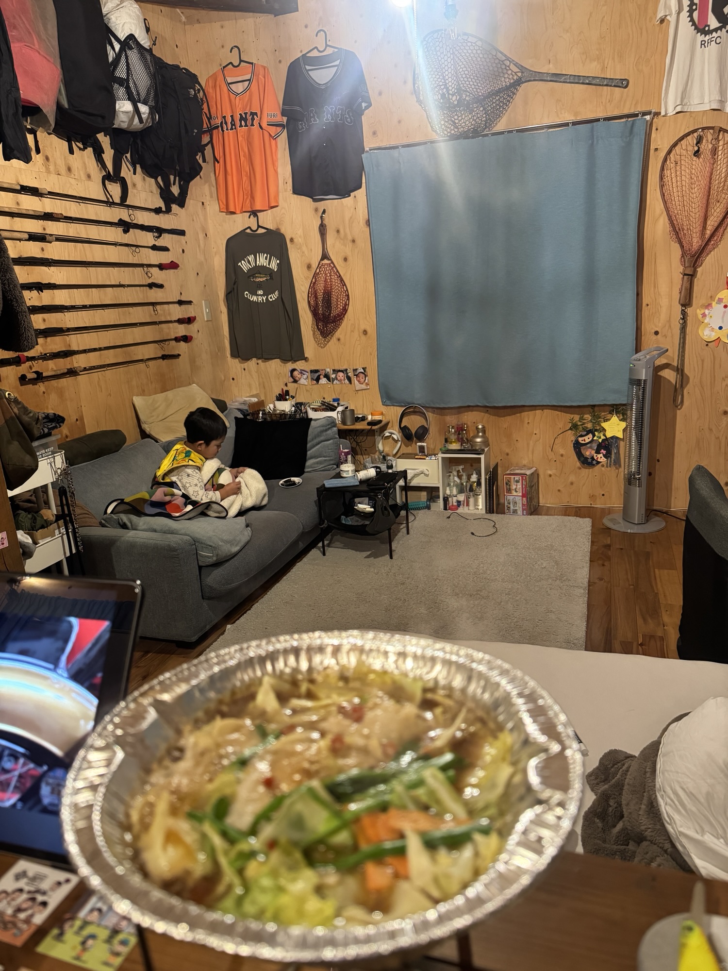 このまま朝まで起きないかと思っておりましたが、起きてきたので夕飯を食べさせて、私もご飯。