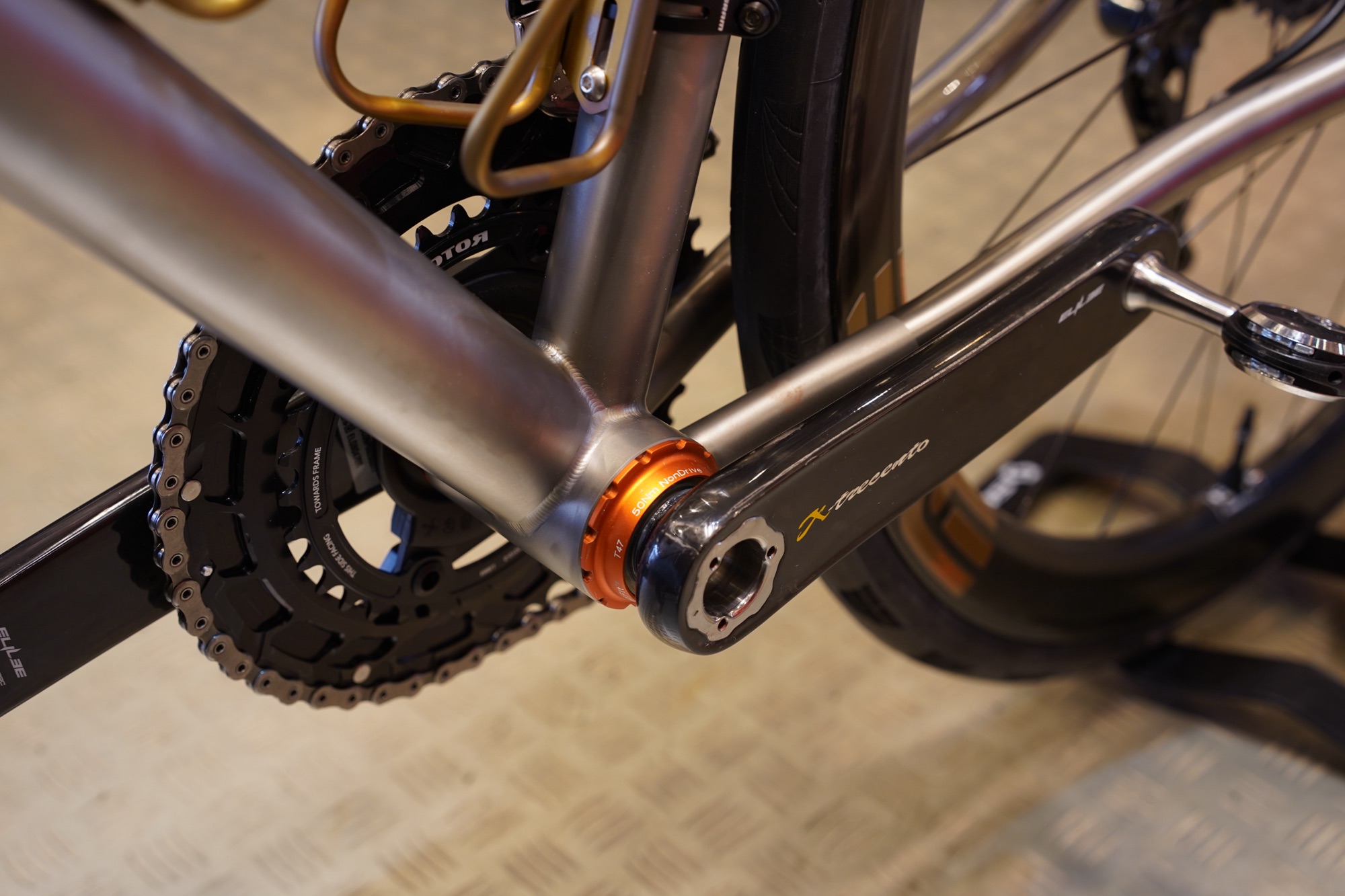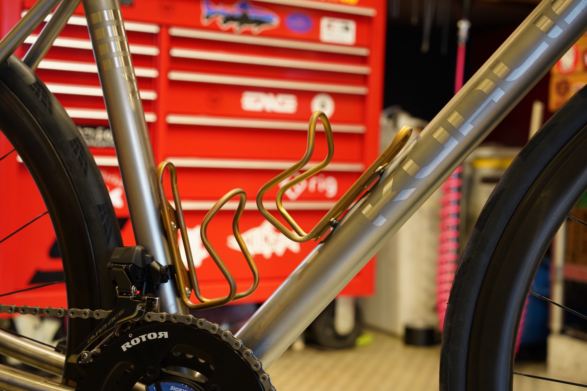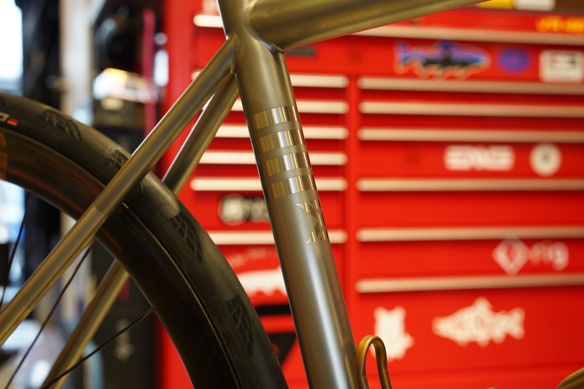 オーダーごとに削るチタンパイプの凄さ、芸術的な溶接と、見えない内部まで光り輝く美しいフレーム。飾り気がないからこそ誰の目も誤魔化せないなかでのこの出来栄え、美しさ。毎度毎度惚れ惚れする出来ですね。