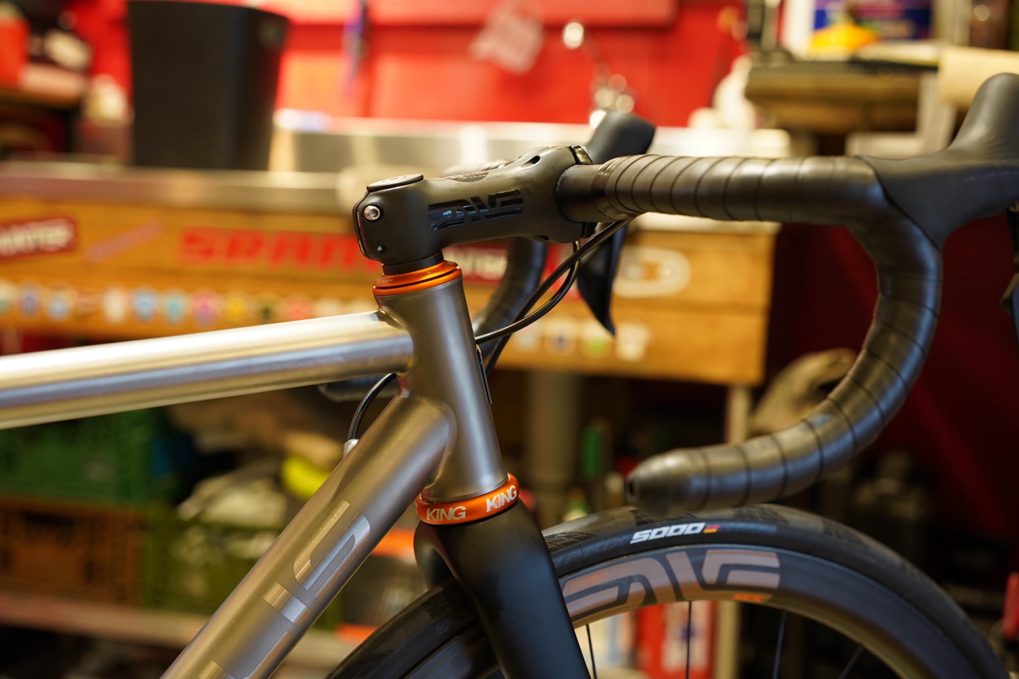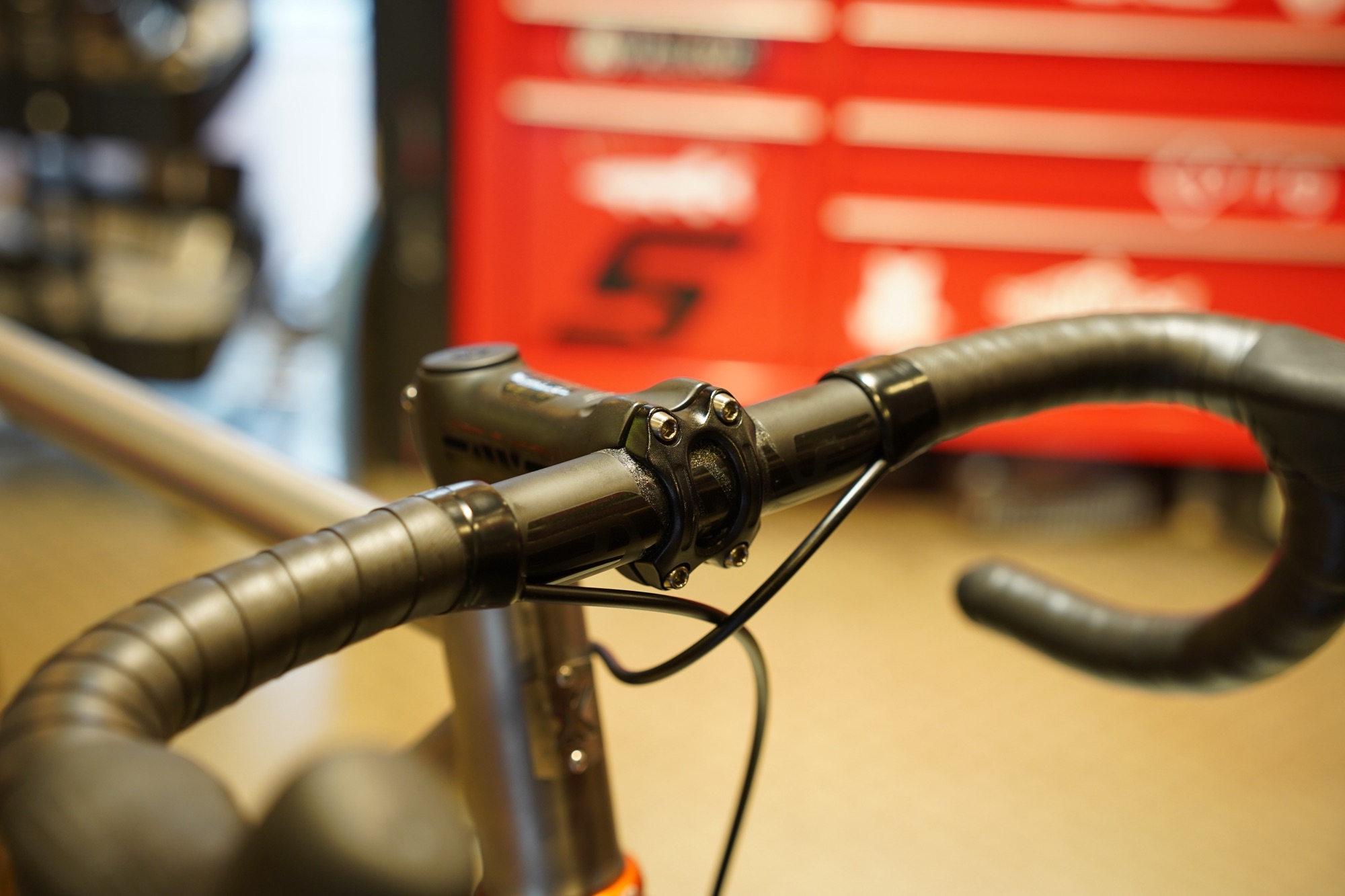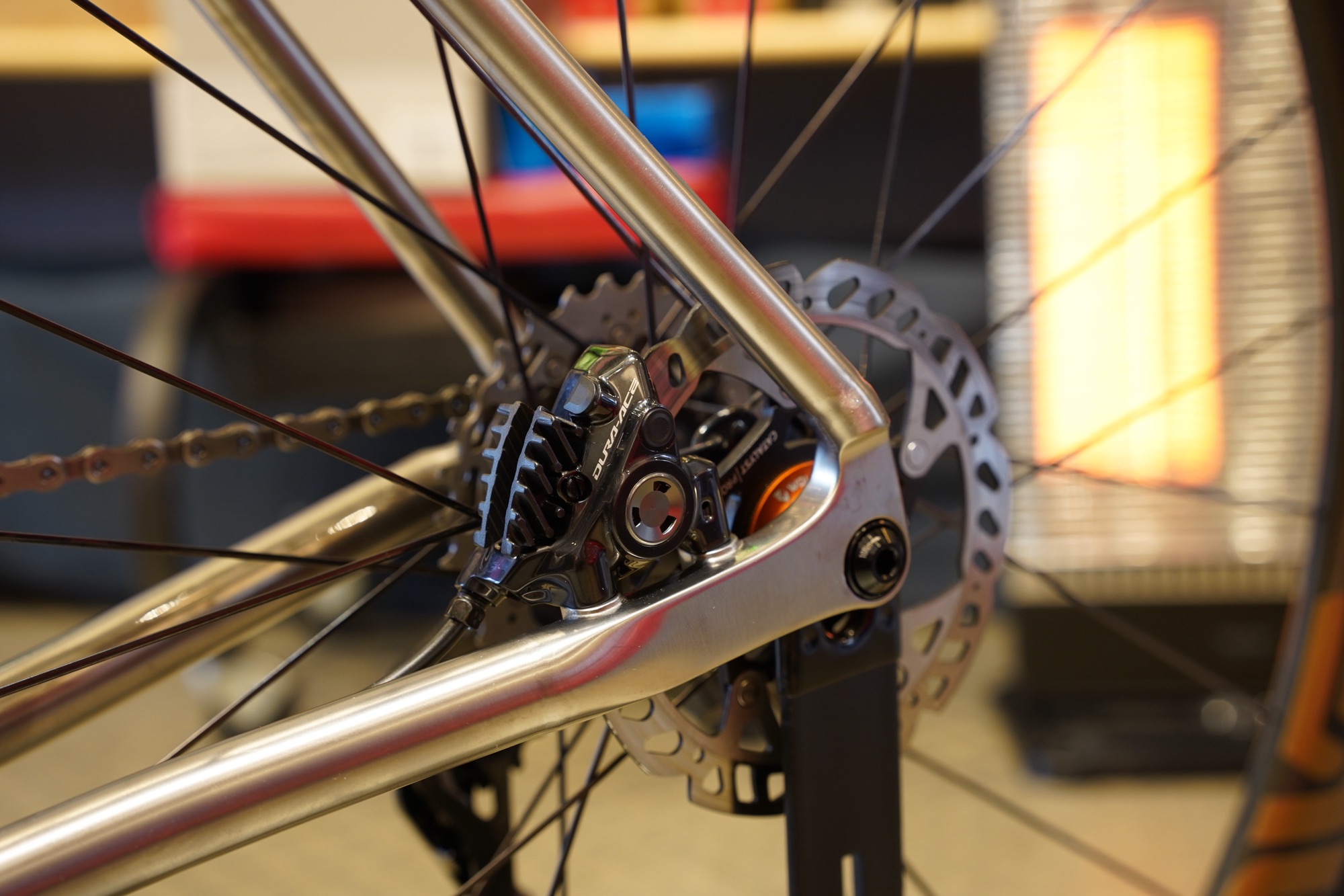 オーダーごとに削るチタンパイプの凄さ、芸術的な溶接と、見えない内部まで光り輝く美しいフレーム。飾り気がないからこそ誰の目も誤魔化せないなかでのこの出来栄え、美しさ。毎度毎度惚れ惚れする出来ですね。