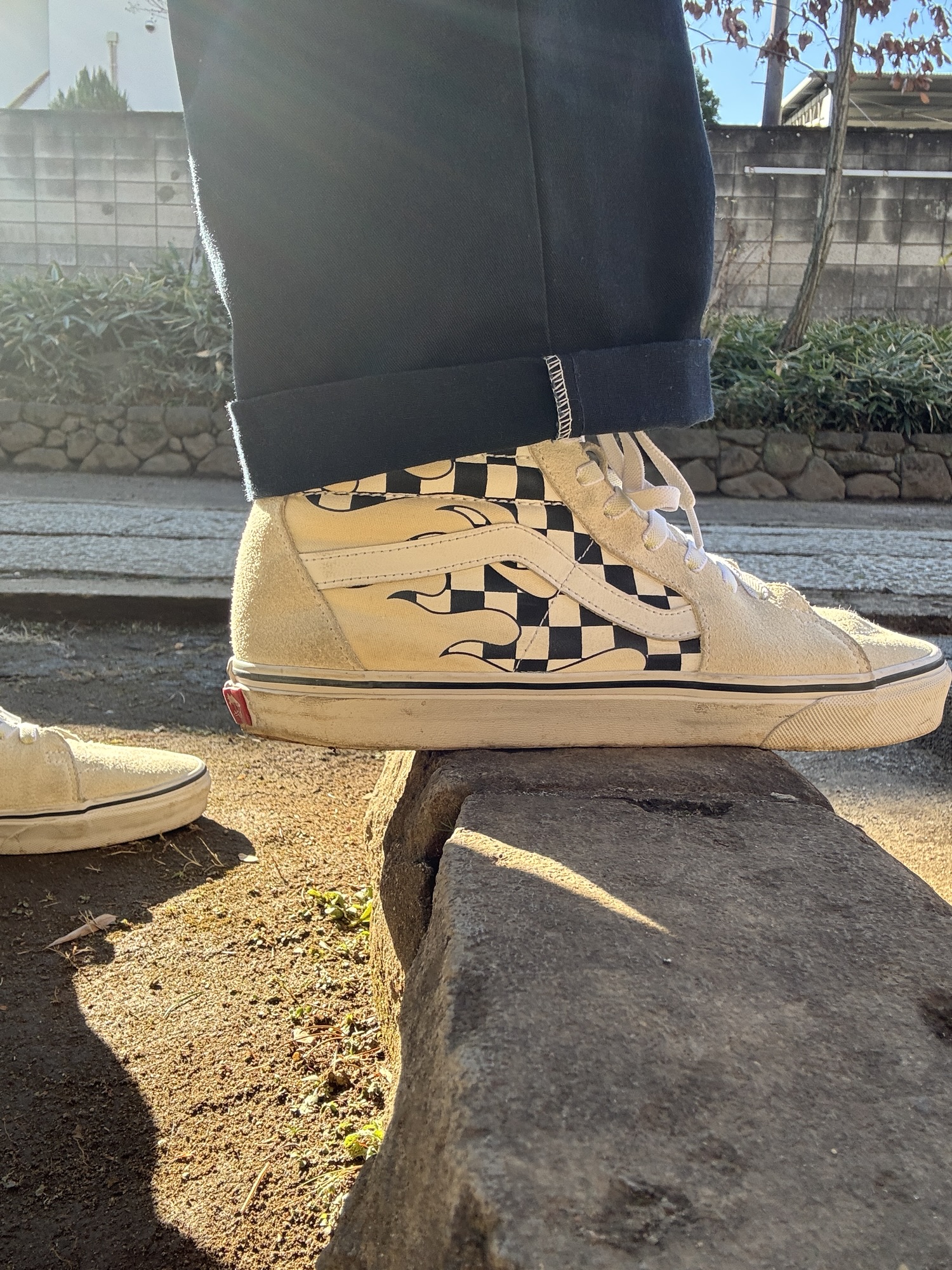 装いがシックになる秋冬はあまり履かないストリート感全開で私個人的に大好きなVANSを履いてテンションアゲアゲでした。カラーリングもフレアだしな。