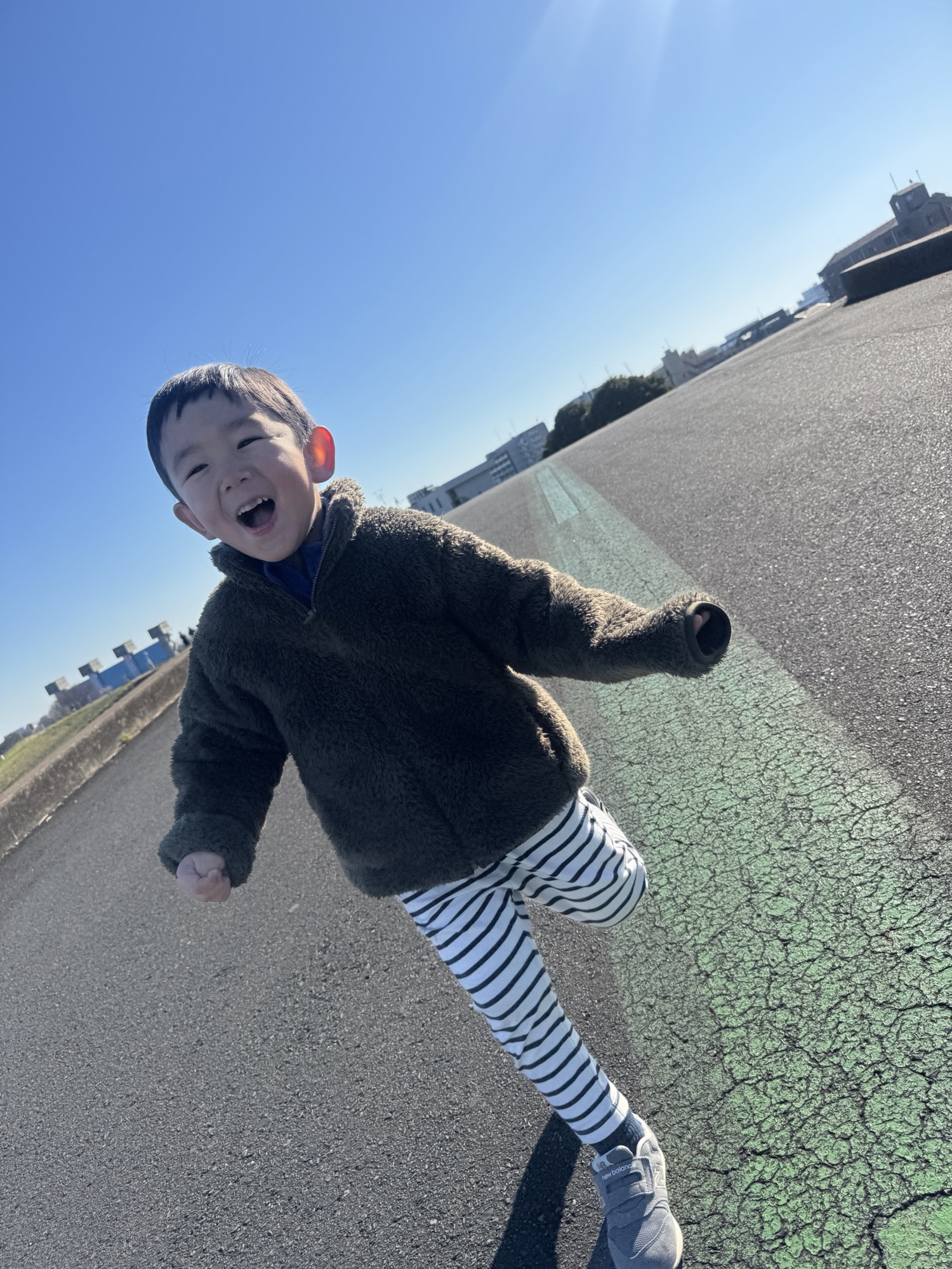 昨日40℃程熱が出たらしいが、けろっと元気な陸杜さんです。今朝は始業前にちょいとお散歩です。