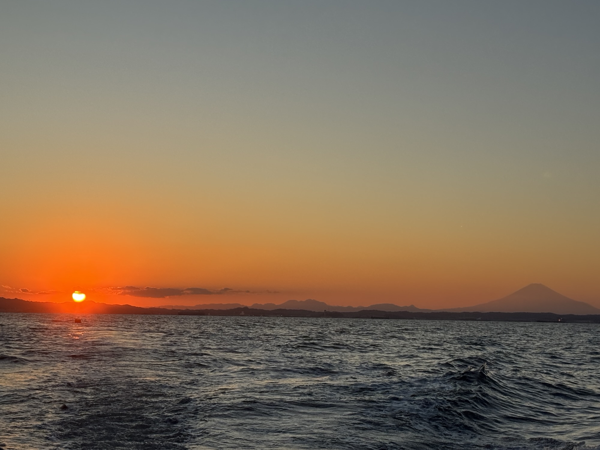 綺麗な夕暮れ、陽が沈む瞬間を洋上で見る幸せ。