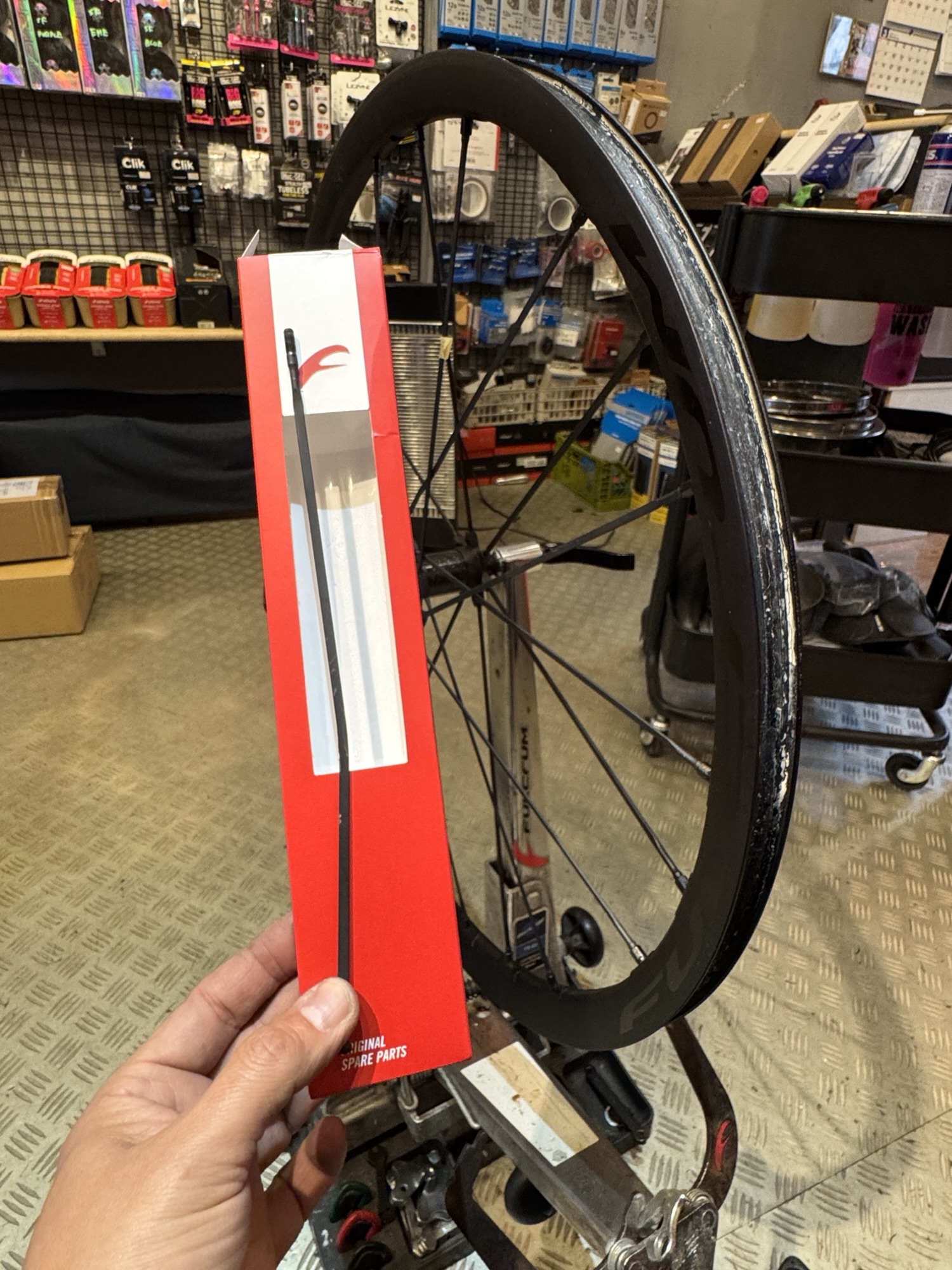 カンパ系のホイールはニップルホールがないので、ニップルに特殊な工具を刺して、それを磁石で誘導してニップルをセットするんですが、何年経っても考えた人やばいなぁ〜と思う次第ですwwwww