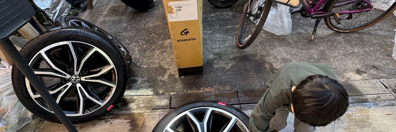 うちのメカニックにノーマルタイヤホイール洗ってもらいました。