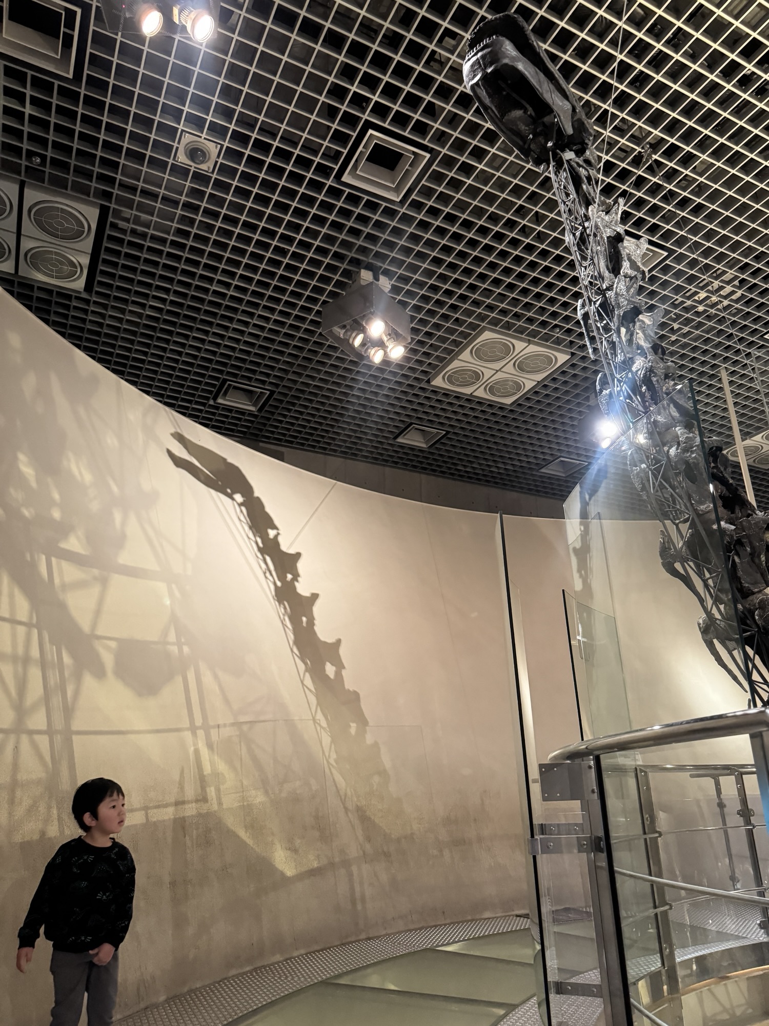 生の恐竜を見るわけにいきませんから、わかっているかわかっていないかわからんが、「もう恐竜さんはみんな死んじゃってお骨になっちゃって、お骨さんが君に会いにきてくれている」と説明したが何となくわかっているようなわかっていないような素振りw