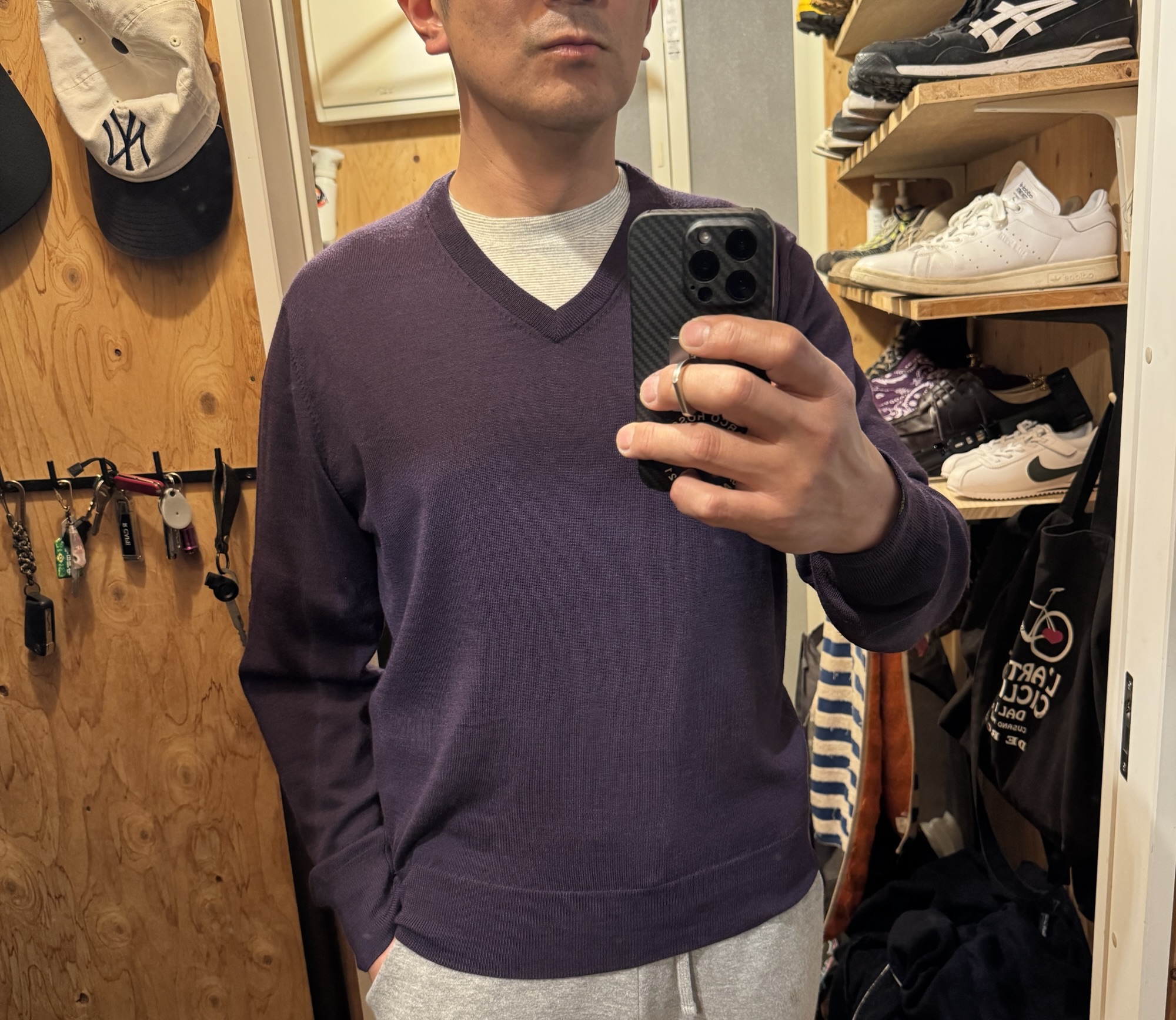 薄手のセーターは春秋と大活躍だし、やはり大人の落ち着いた雰囲気なのでおじさんには最高です。