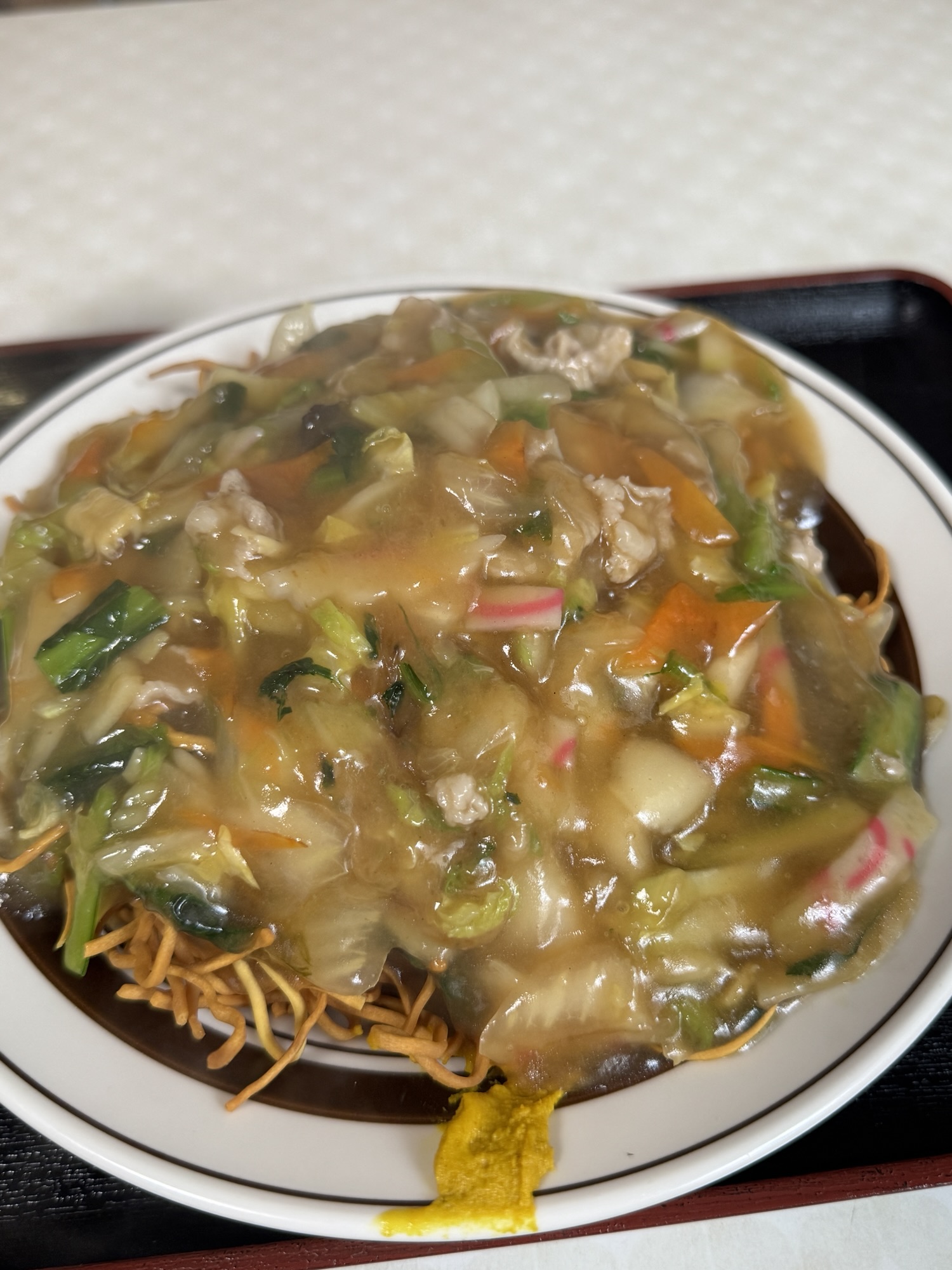 後、街中華で揚げ焼きそば。