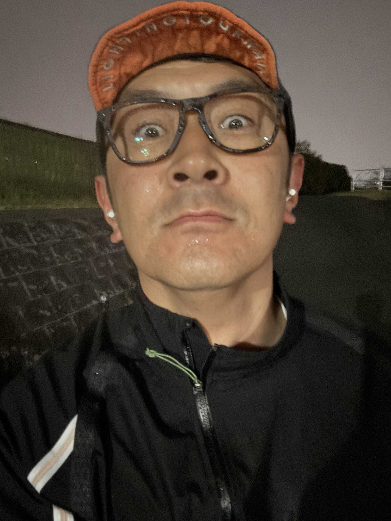 巨人の勝利でテンション爆上がりで雨の中ランニングしましたww目が決まってます。