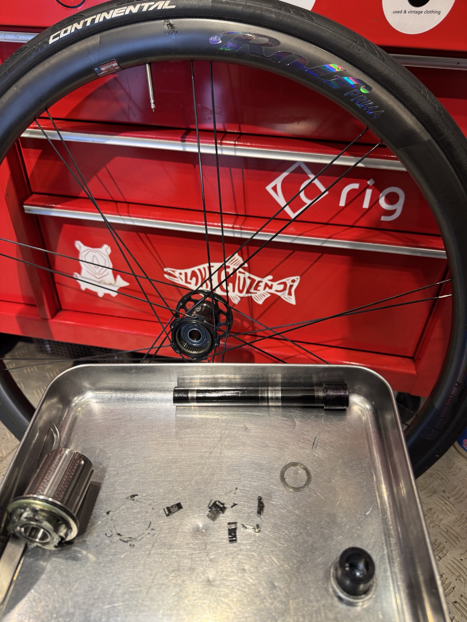 無理に開けてもあまり意味がないシールドベアリングは必要に応じてグリス塗り直し等は行います。ですが、クリスキングのベアリング以外は、ゴロツキを感じた時点でもう手遅れなので、だいたいはシールドベアリングごと交換になります。セラミックベアリング選ばなければ一個2000円くらいですね。
