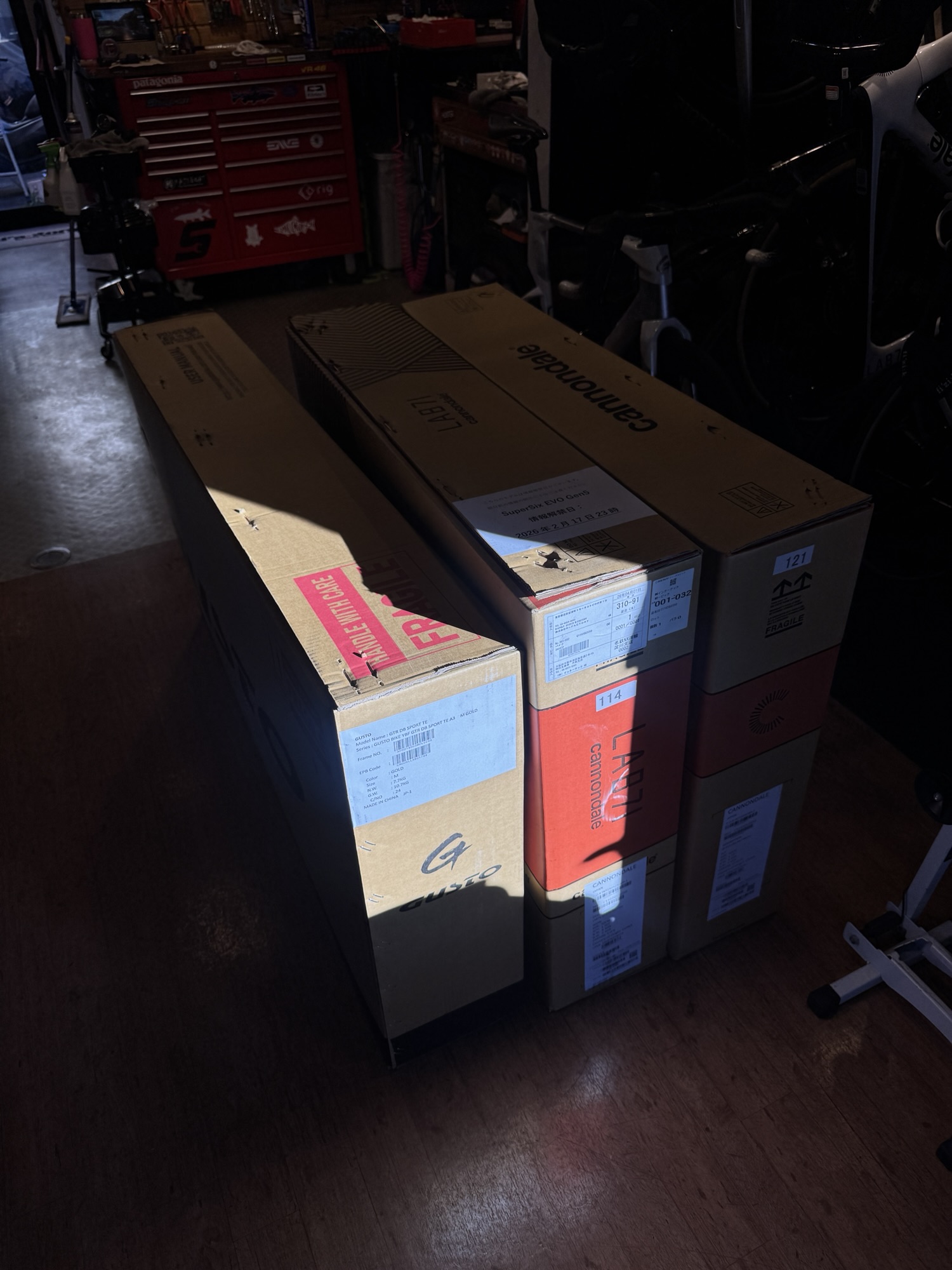 4月も入荷からスタート。新型EVOは勿論、やはり強いGUSTOバイクといった所でしょうか。