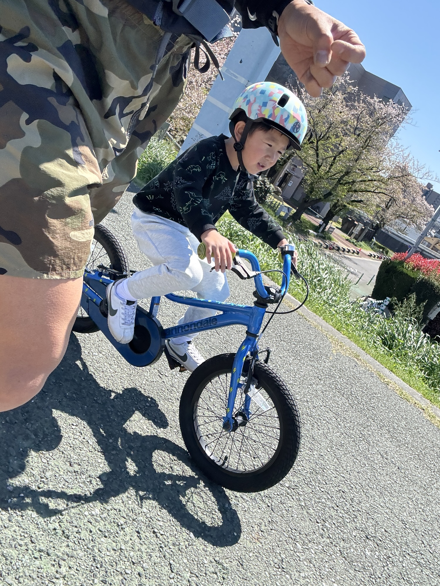帰宅後はチビはチャリ、父はランニングで汗を流し