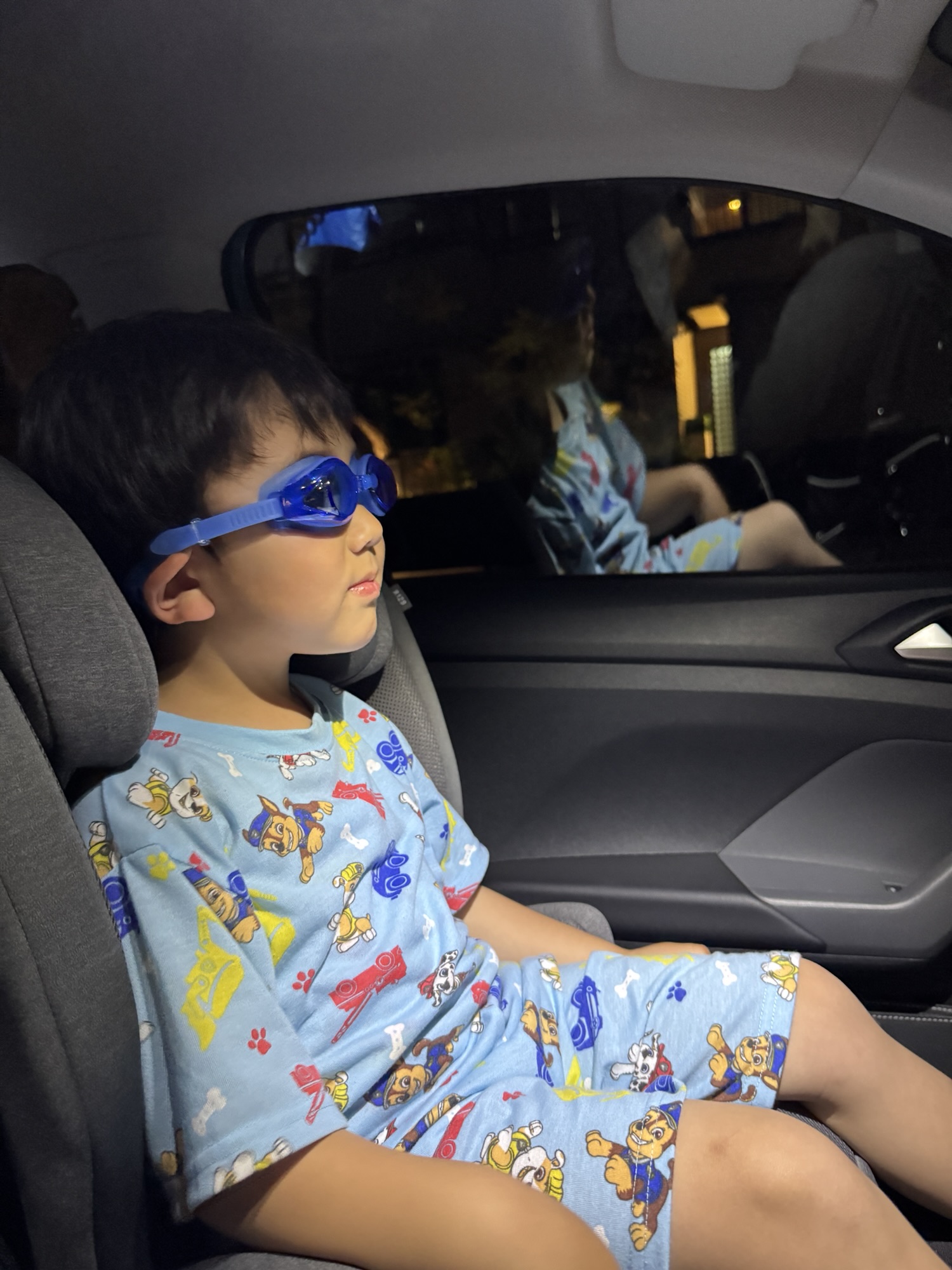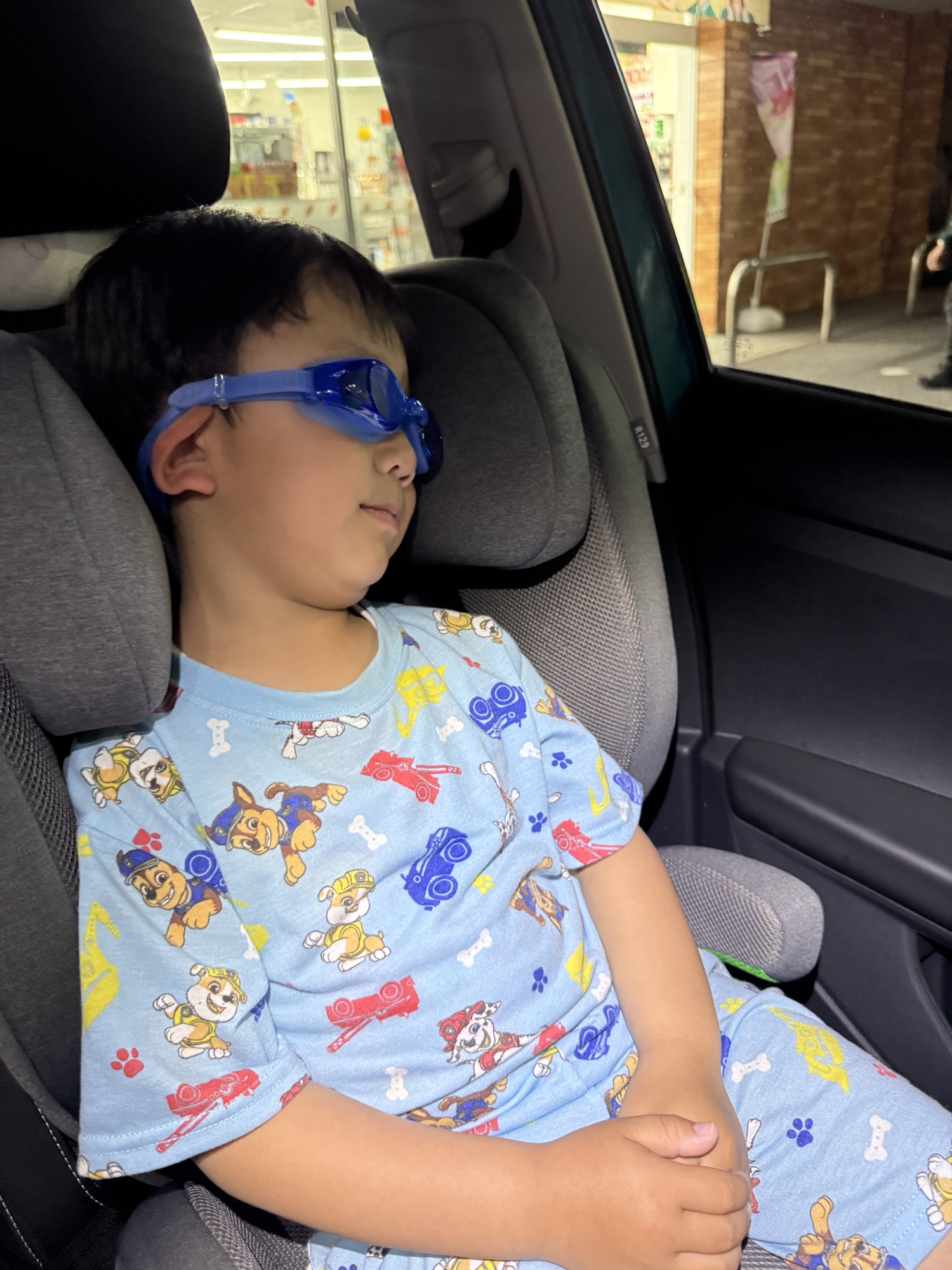 土曜夜、海に行くと水中メガネをかけた状態でルンルンの次男。意味が分からない。