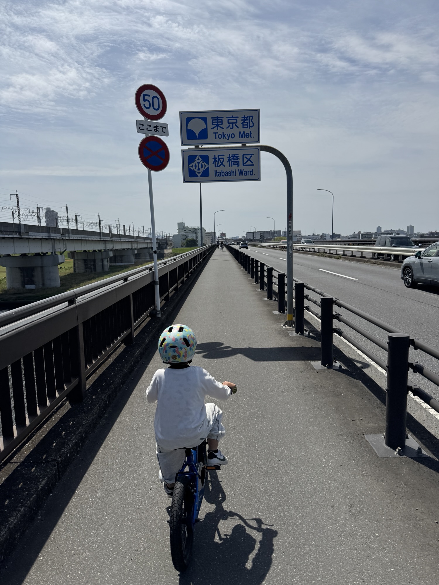 初めは公園行くって勝手に先導して川口方面向かったのですが、なんか記憶違いだったようで、結局ただのサイクリングになってしまいました。長男もだけどうちの子たちは異常に地理に強いかもしれない。