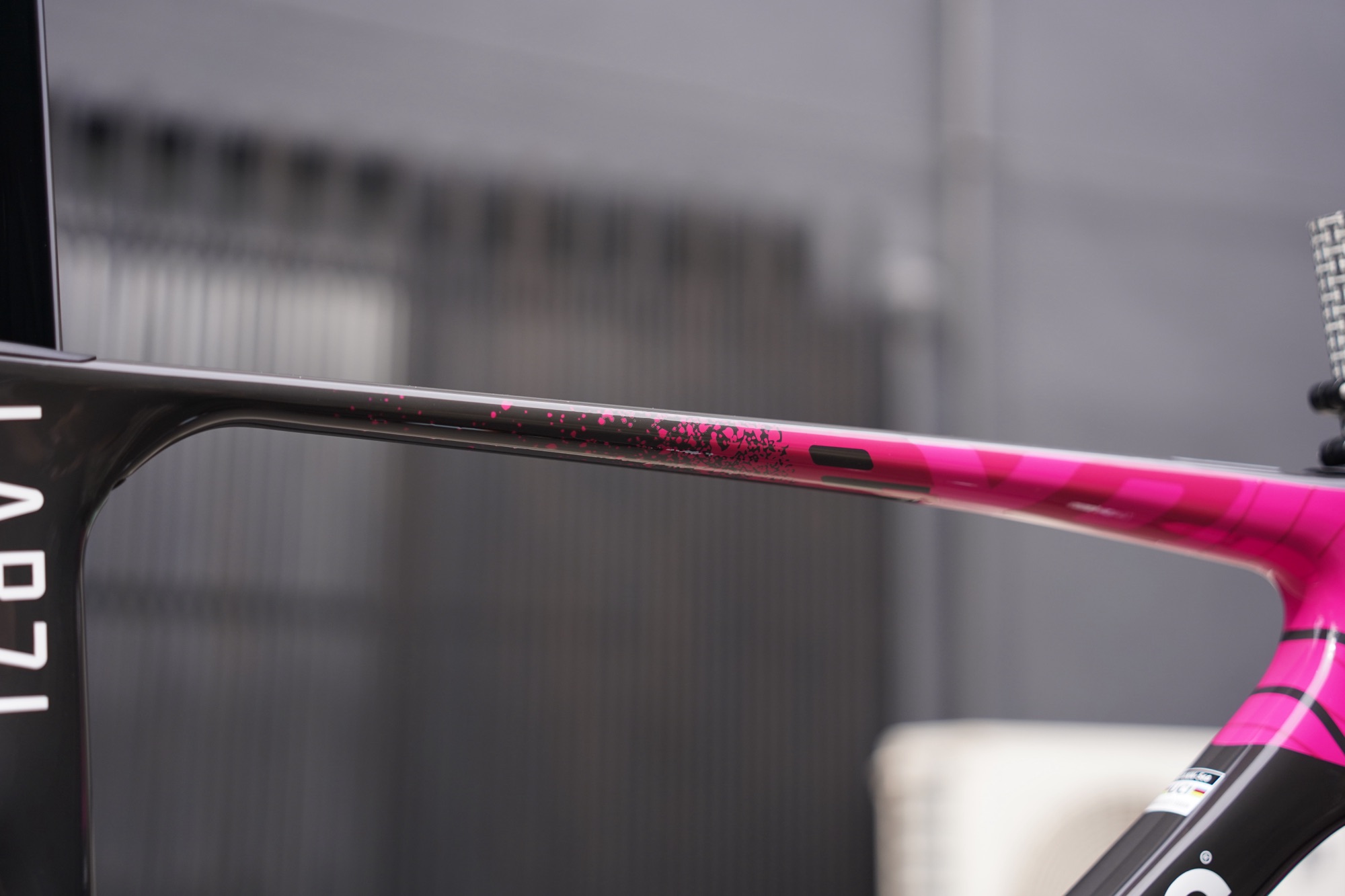 トップチューブ、実はうっすらEVOの文字がありますね。